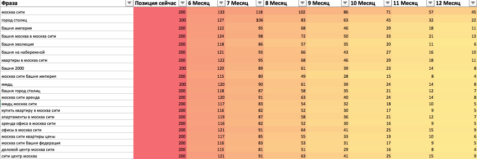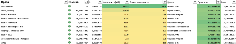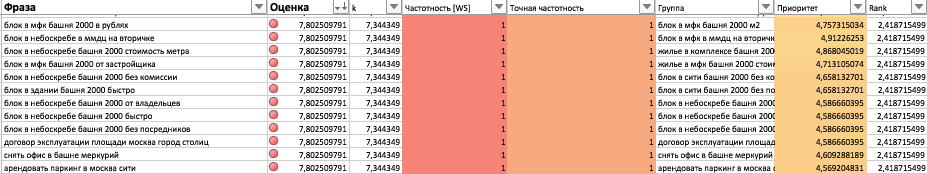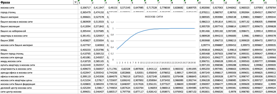 Когда были подсчитаны значения всех четырех якорей у нас получились 4 столбца значений для каждого из 1040 запросов. Можно уже начать ранжировать по каждому из них в отдельности, но нам нужна была совокупность всех якорей, или их
